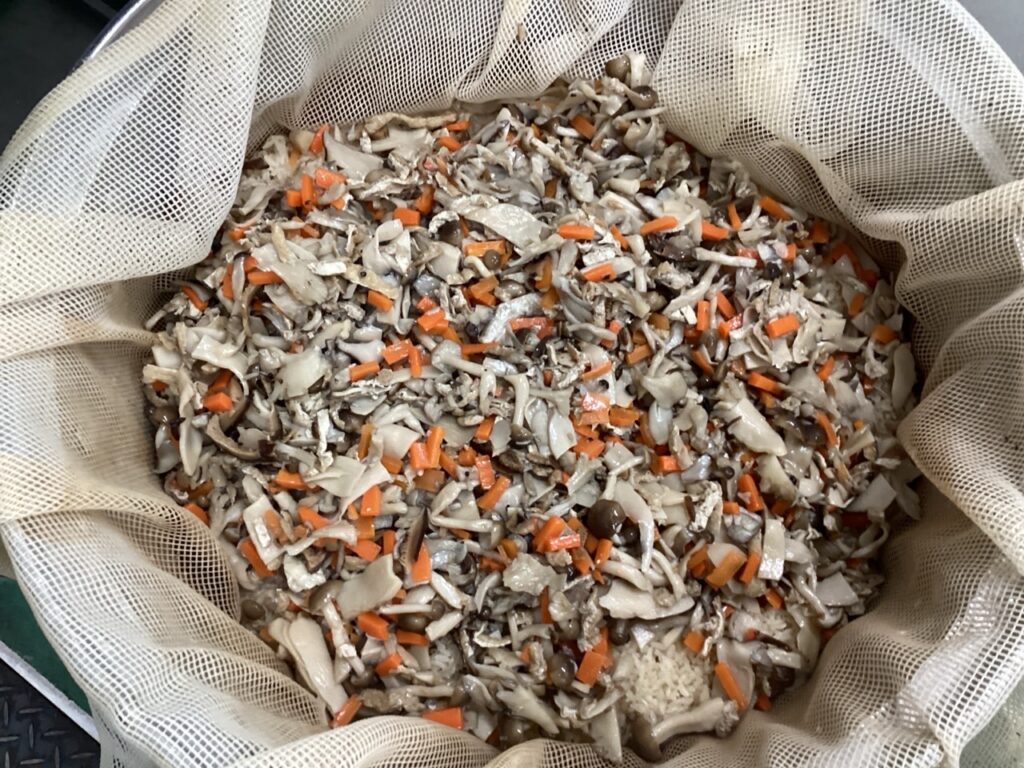 きのこご飯は椎茸、しめじ、舞茸、エリンギをたっぷり入れて、