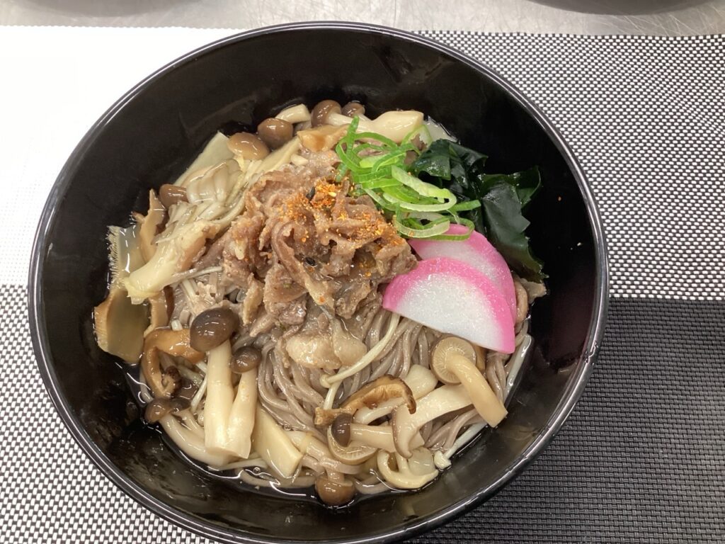続いては「豚とキノコのあんかけ蕎麦」✨