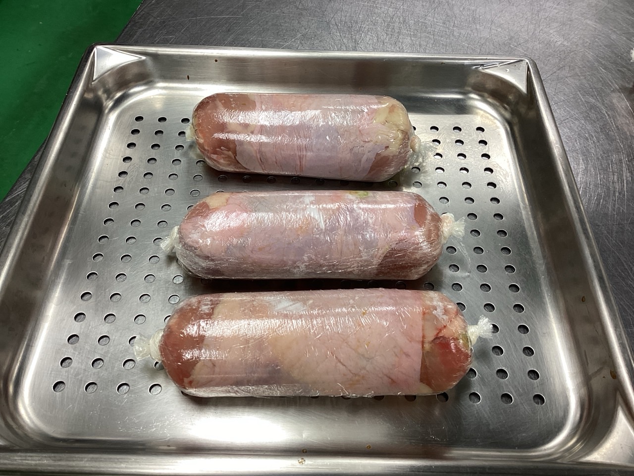 ソーセージのようにくるっと巻いて、まずは蒸すという方法を試してみました。