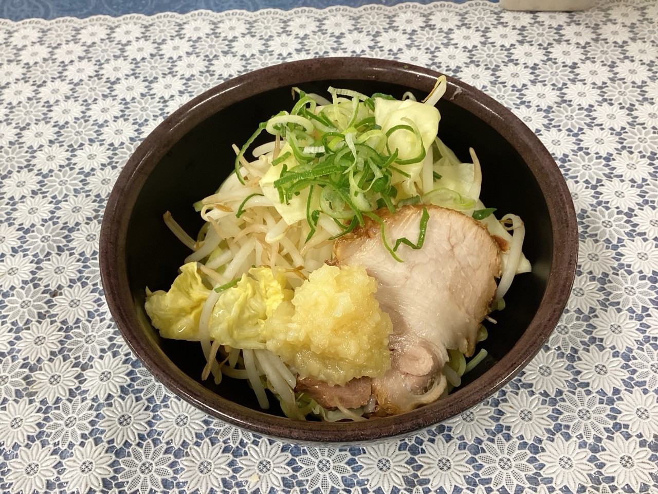 二◯系ラーメンといえば、やはり山盛りの野菜(もやし)、存在感のあるチャーシュー、そしてガツンと効いたニンニクが特徴です。🍖🧄
