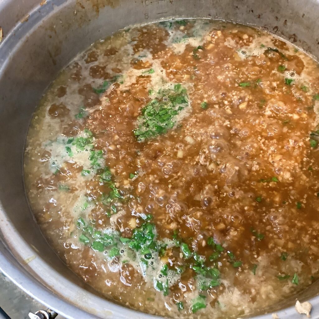 ナンプラーやオイスターソースなどで甘辛く味付けしてご飯にかけたものです。