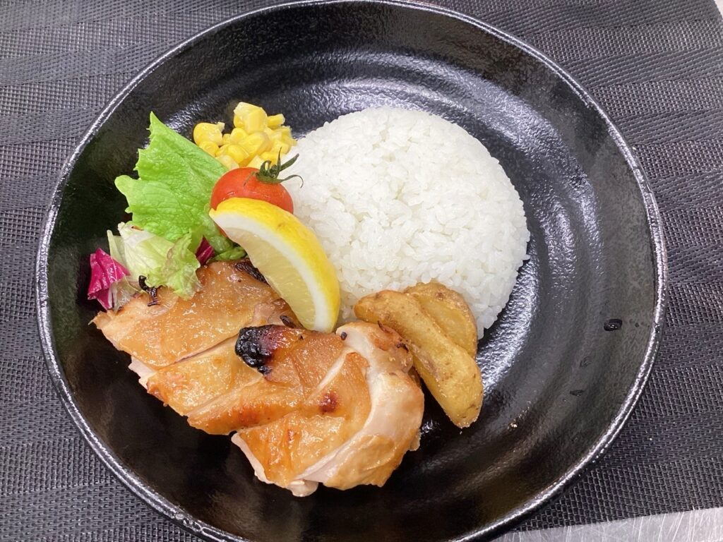 チキンとサラダ、ご飯をひと盛りにしたワンプレートランチでお出ししました✨